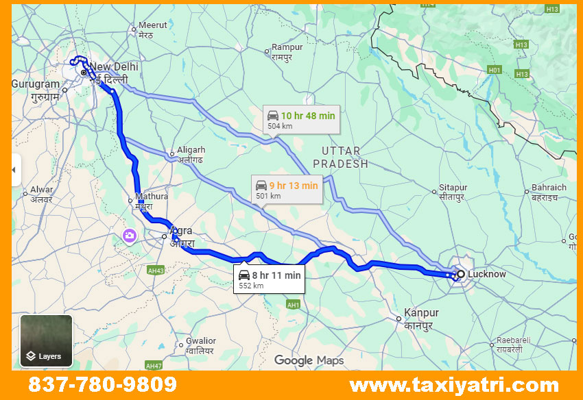 Lucknow to Agra via Delhi Cab Route