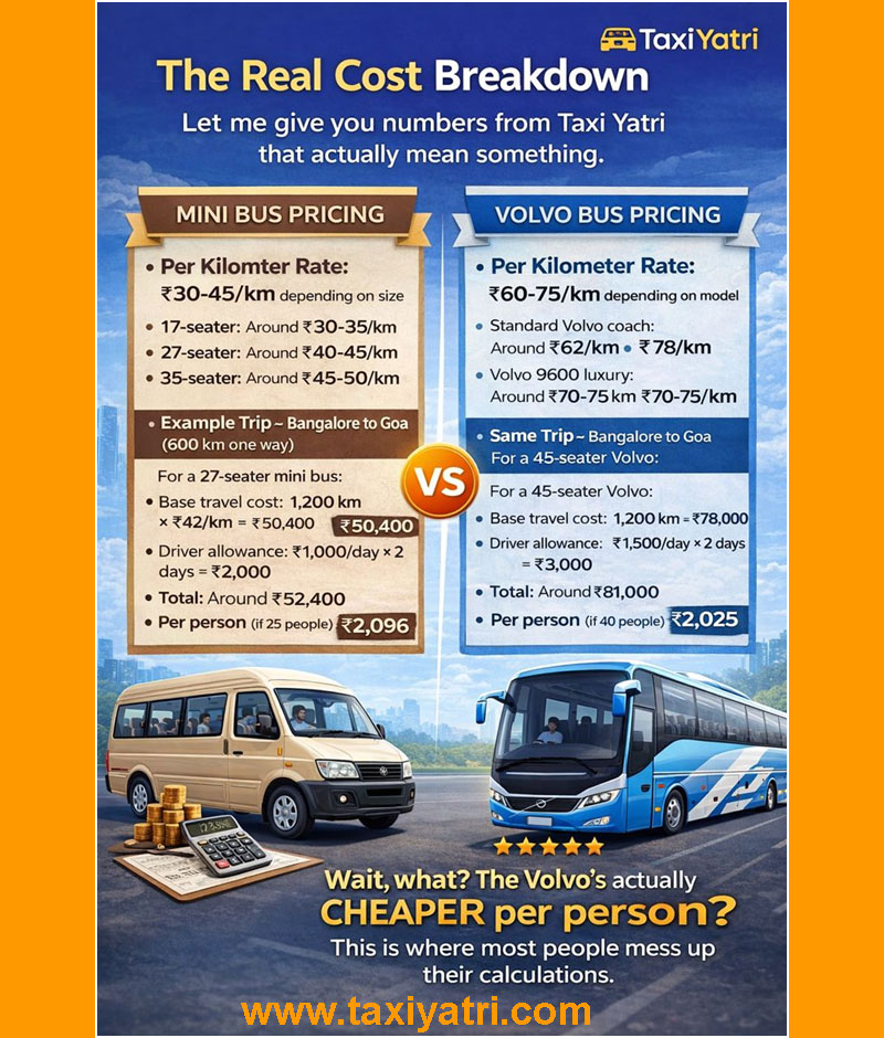 My cousin booked a mini bus for 18 people thinking she’d save money. She did the ₹35/km calculation, felt smart. Then reality hit.